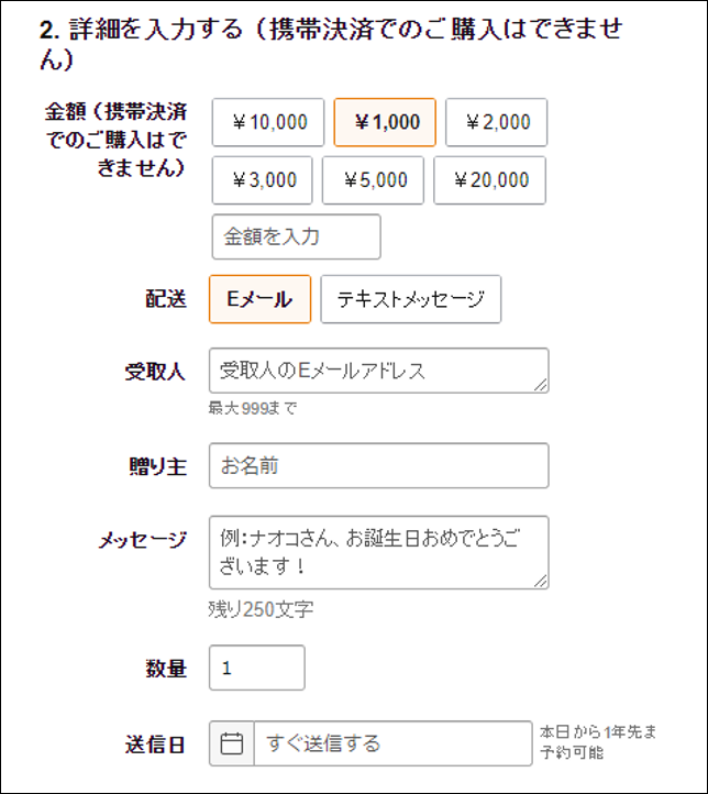 2.詳細を入力する (携帯決済でのご購入はできません)