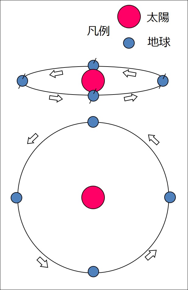 当たり前ですが、地球は1年かけて太陽を1周回ります。