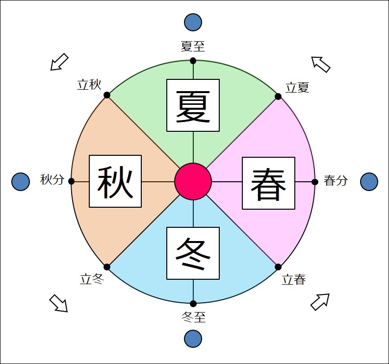 これで周期を4等分しています。ちなみにこの分け方を「二至二分」と言います。