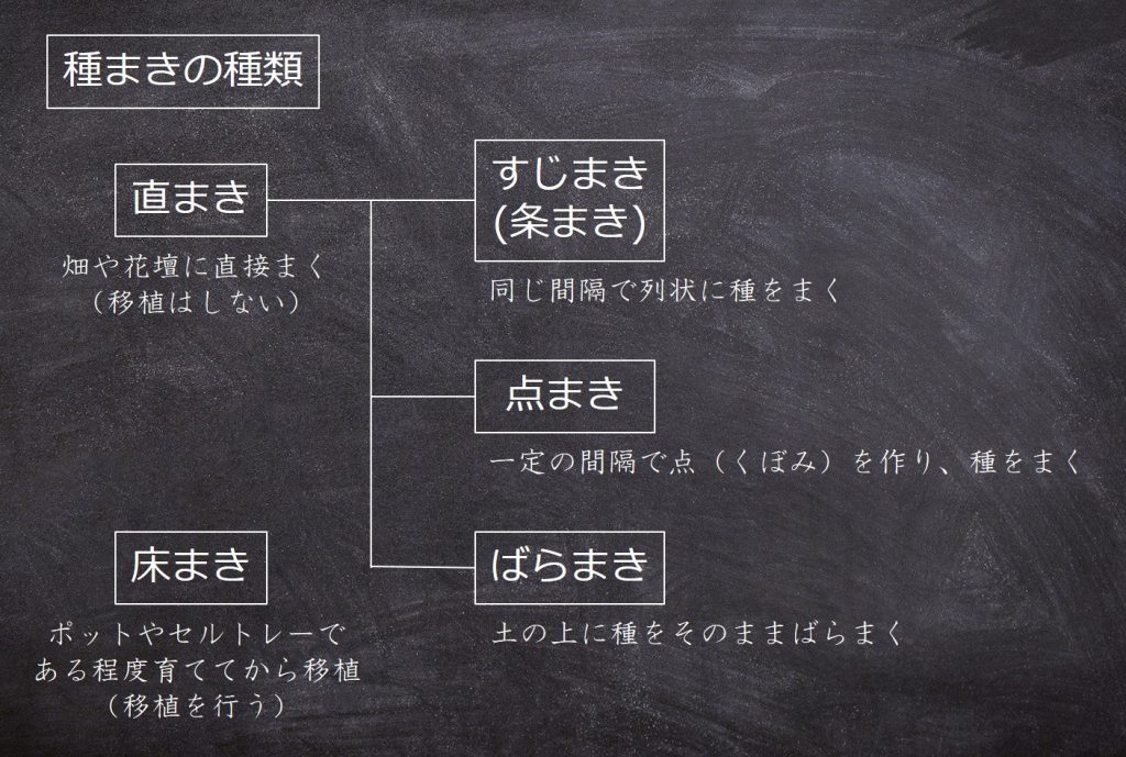まず畑や花壇に直接まくのか、ポットやセルトレーなどの容器にまくのか(後から移植する)で種類が分かれます。
