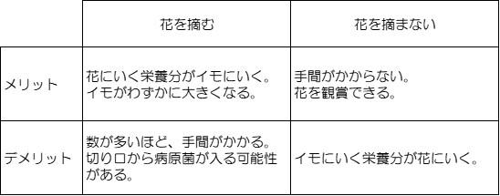 花を摘む場合と摘まない場合でメリット・デメリットを整理しました。